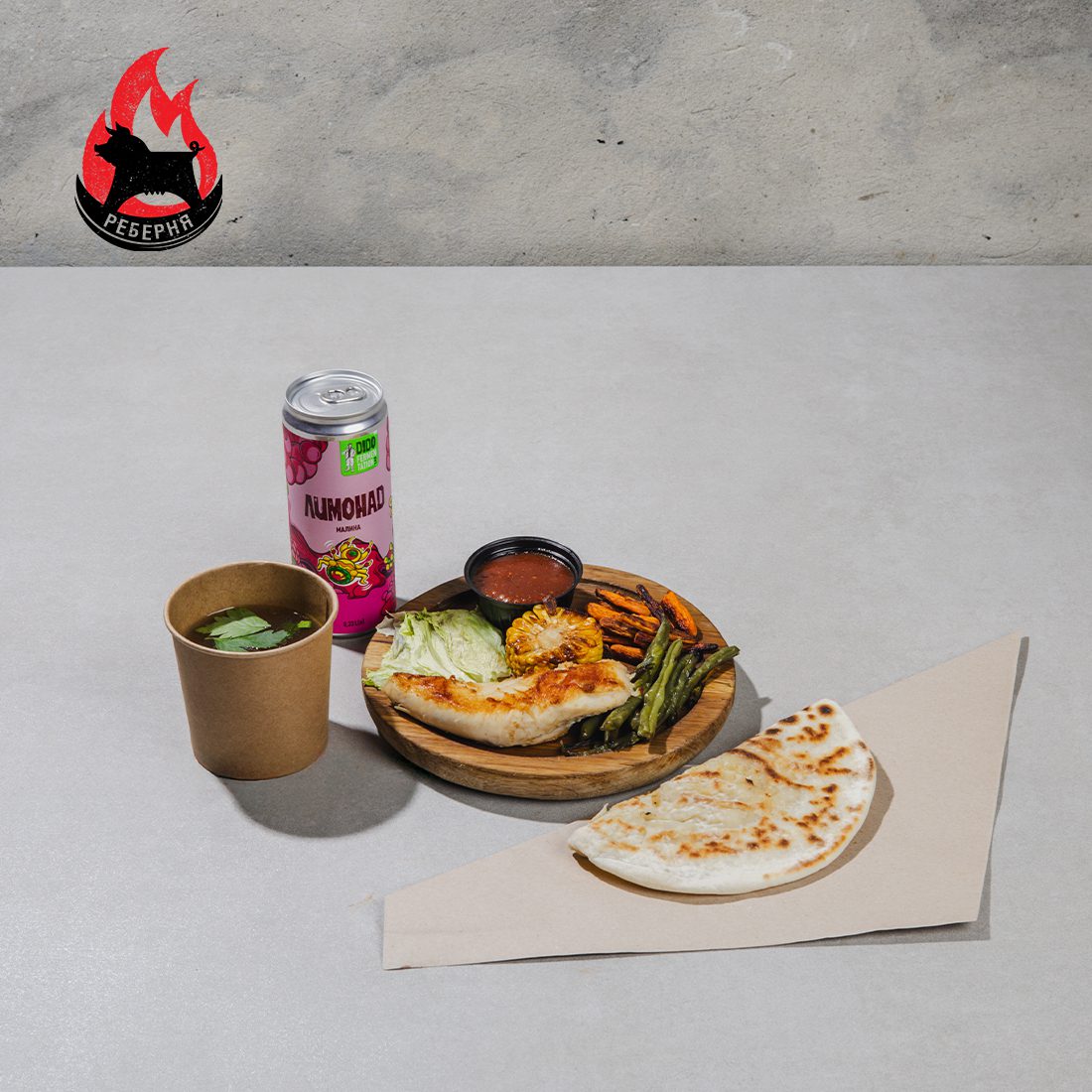 – 1 куряче філе з овочами гриль (100/100/50 г)