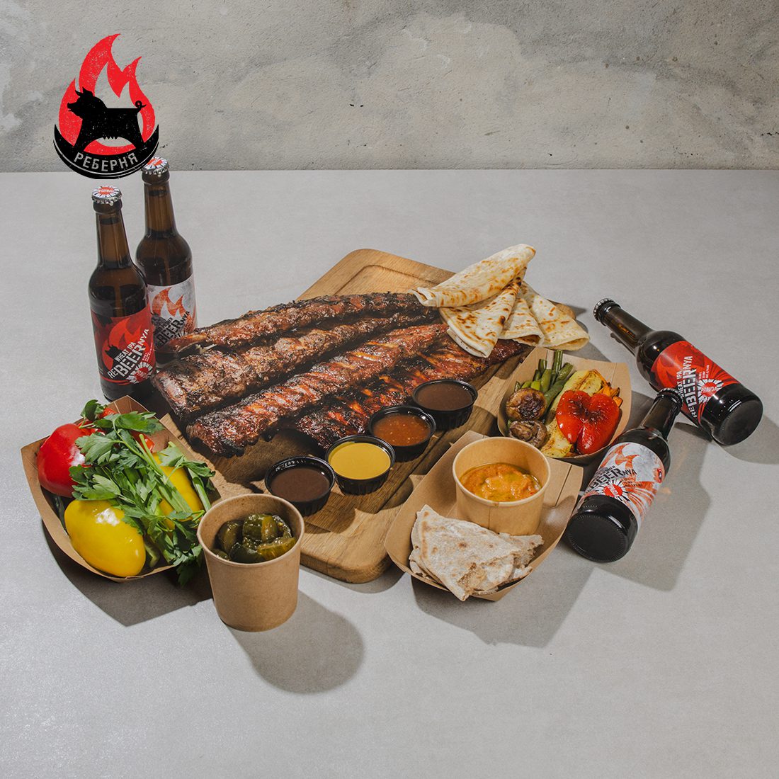 – 4 порції Ребер на вогні  + 4 соуси (2 барбекю та 2 гірчичні)