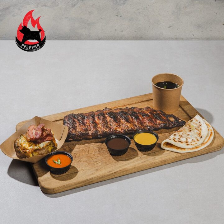 – 1 порція Ребер на вогні з соусом на вибір (барбекю, гірчичний або азійський)