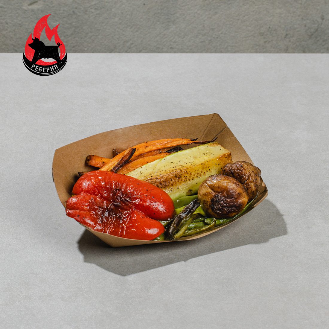Кабачок, квасоля стручкова, морква, гриби печериці, перець болгарський обсмажується на грилі до готовності з додаванням солі та перцю.